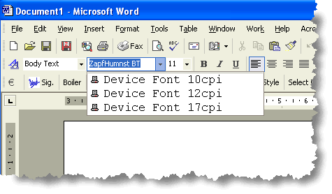 ink jet available on the PC used in this example (see below) and the fonts immediately become available.